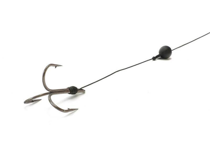 Sumcový návazec s trojháčkem navázaný na pletené šňůře s chrastítkem ukončen obratlíkem prečítať celé