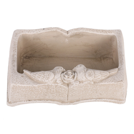 Každé pietní místo si zaslouží svou zvláštní péči a náležitou výzdobu. Tento šedý betonový obal na květiny ve tvaru otevřené knihy s ptáčky, bude výborným spojením esteticky hodnotné dekorace s praktickou funkcí. Jednoduše do něj umístíte rostlinky, které společně s ním vytvoří důstojnou výzdobu pro vzpomínkový prostor.