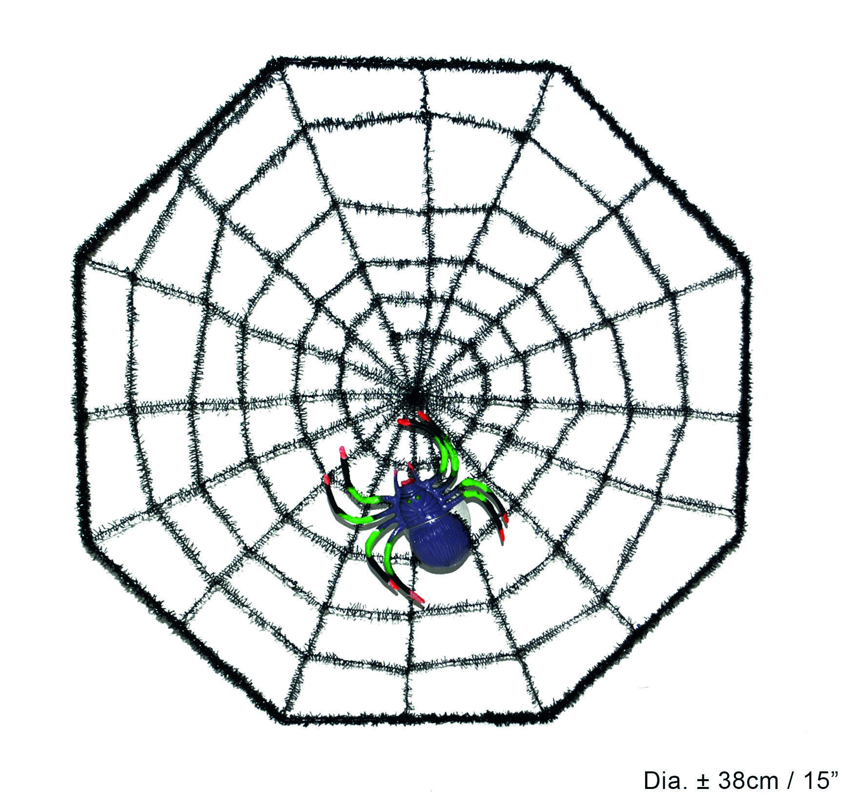 Pavučina s pavoukem patří k tradiční dekoraci na každé halloweenské party.Materiál: PVC a tkaninaBarva: černáRozměry: 38 x 2,5 x 38 cmVáha: 0,056 kg prečítať celé