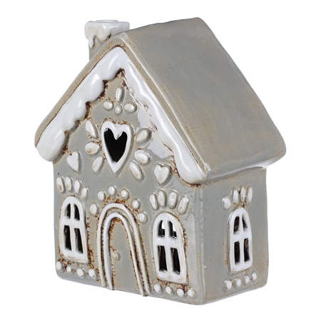Domeček keramický - zdobený, na čajovou svíčku, šedý