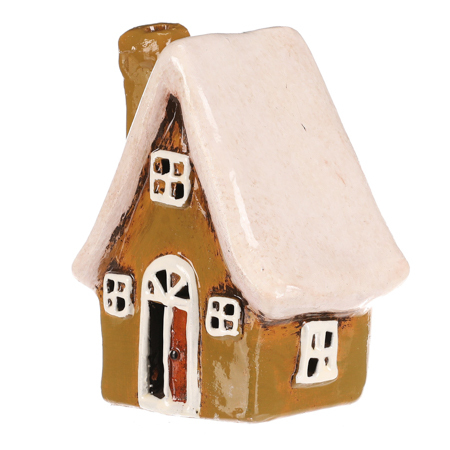 Domeček keramický - LED osvětlení, zelený s bílou střechou