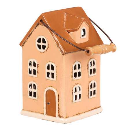 Keramický patrový domek s prostorem pro čajovou svíčku zaujme svou okrově žlutou fasádou a hnědou střechou. Díky rukojeti ho snadno přenesete, kam potřebujete. Po zapálení svíčky vytvoří krásný světelný efekt, kdy paprsky jemně pronikají skrze okénka. Ideální podzimní dekorace, která vnese do vašeho domova teplé světlo a útulnou atmosféru.