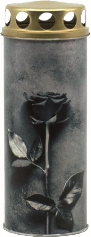 Svíčka hřbitovní dekor šedá růže (hoří 2 dny)