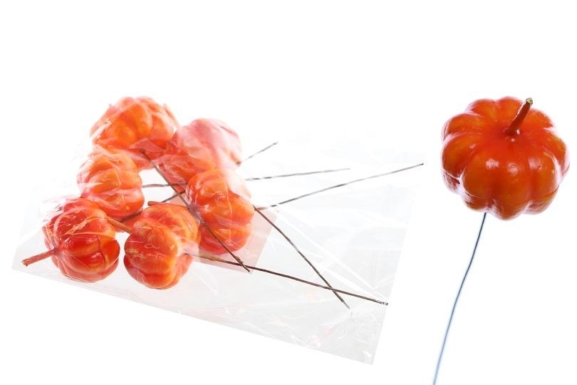 Sada 6 ks umělých dýní na drátku.Materiál: polystyrenRozměry:výška dýně včetně stopky 4 cmprůměr 3,5 cmdélka včetně drátku cca 14 cm prečítať celé