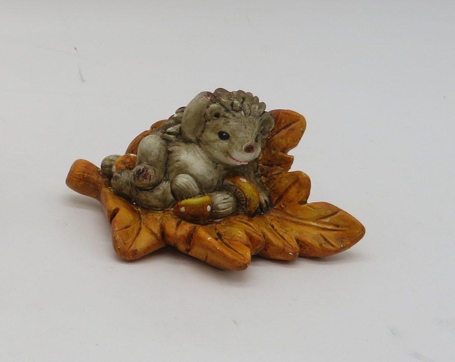 Dekorativní ježek ležící na listu.Materiál: polyreinRozměry:výška 5,5 cmšířka 9,5 cmhloubka 6 cm prečítať celé