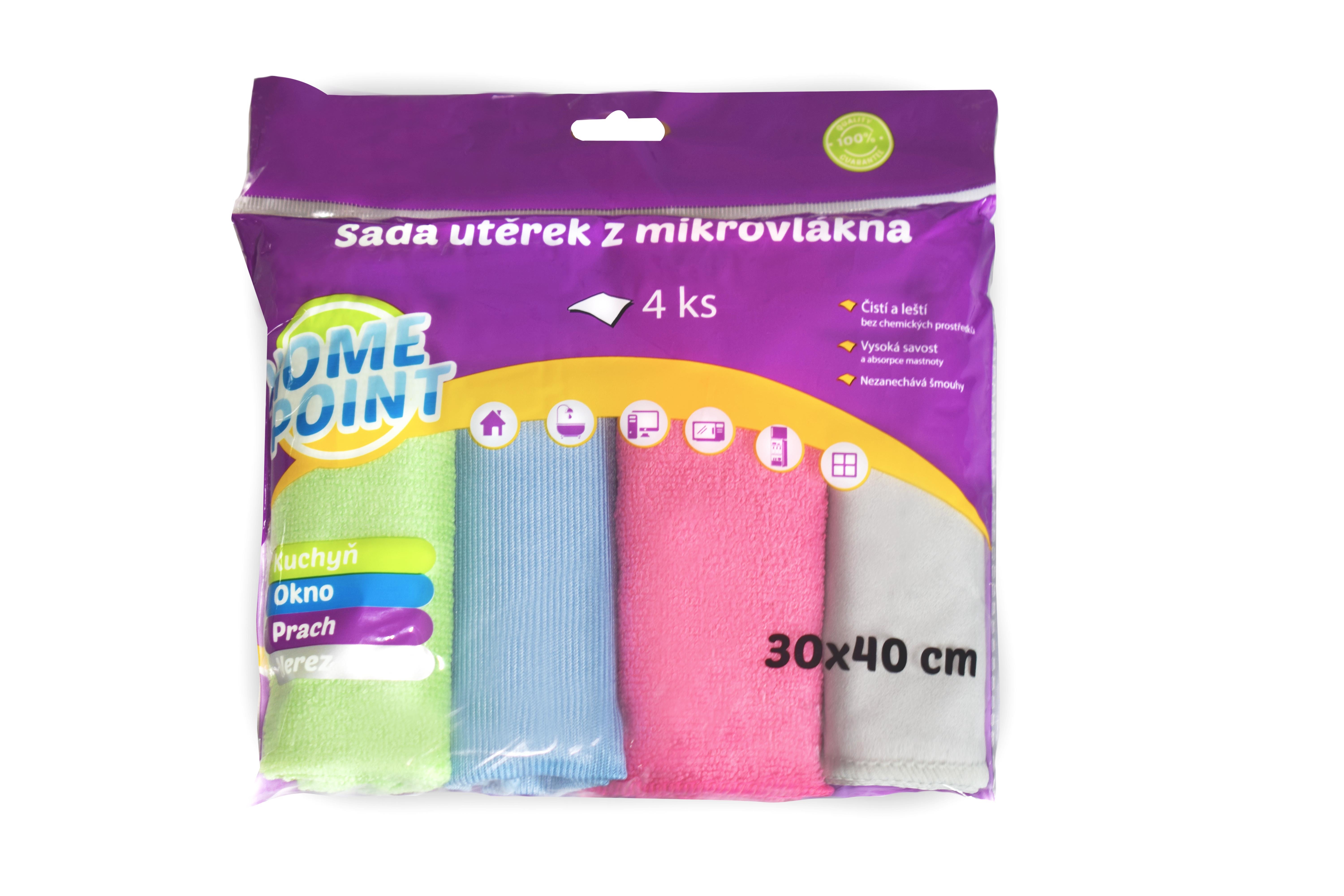 Mikrovlákno sada čistících utěrek 4ks, 30x40 cm