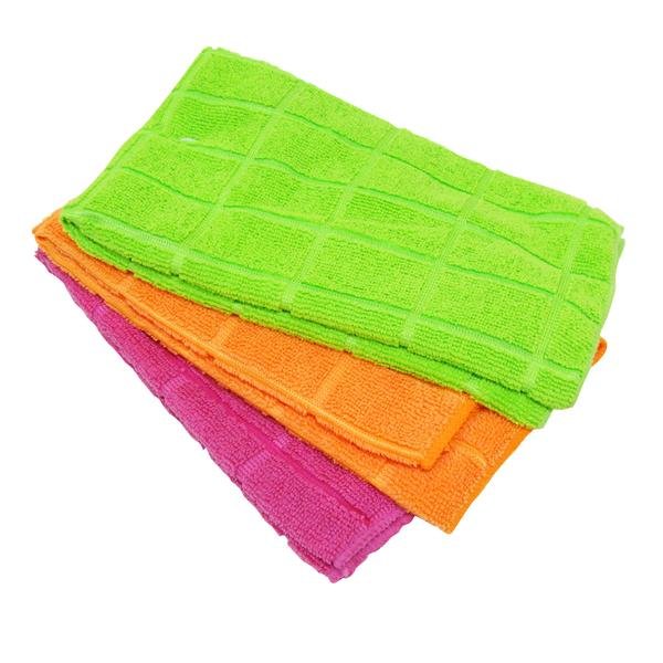 Hadr mikrovlákno - set 3 ks. Vynikající utěrka z mikrovlákna pro váš úklid skleněných ploch, oken nebo skleněného nádobí. Utěrka velmi dobře saje a leští, nepouští chlup. Sada obsahuje 3 hadry které jsou v provedení barev, zelená, oranžová a růžová. Rozměry - 48 x 41 cm.