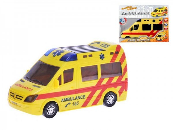 Auto Ambulance plast 21cm narážecí na baterie se světlem a zvukem v krabičce