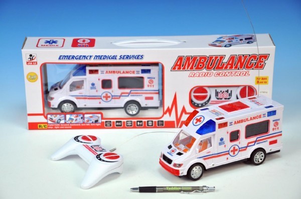 Ambulance RC plast 22cm 27MHz na baterie plná funkce se světlem a zvukem v krabici