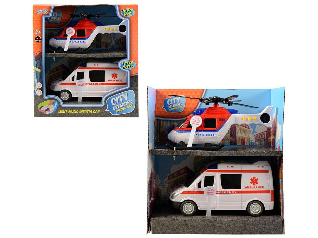 Souprava záchranáři - vrtulník, sanitka, na baterieHračka je určena pro děti 3+.Rozměr hračky je 9x17x8cm.Materiál hračky je plast.Balení hračky je open box. prečítať celé