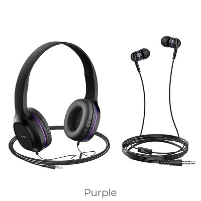 Sluchátka + HF HOCO W24, 3,5mm Jack, barva fialová