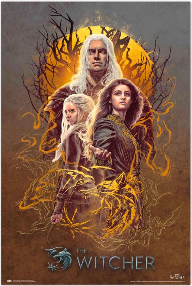 Oficiální produkt - plakát z katalogu dárkového a dekoračního zboží s grafikou a licencí fantasy dramatického seriálu The Witcher (Zaklínač).Zboží je legálně licencováno a prodáváno se souhlasem vlastníků licenčních práv.Plakát s motivem hlavních postav Ciri, Geralta a Yennefer pro všechny...