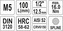 Materiál byl podroben zkoušce tvrdosti pro tvrdé materiály podle Rockwella, s výslednou tvrdostí HRC58-62.