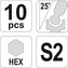 Jednotlivé klíče jsou zhotovené z kvalitní oceli AISI S2, zajišťující dlouhou životnost.