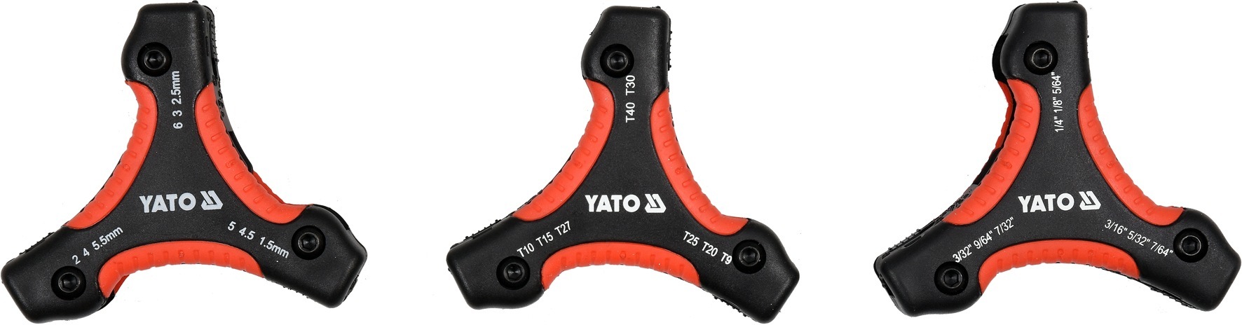 Sada 3 ks skládacích nástrojů s Hex (metrické a imperiální) a Torx klíči. Materiál vysoce kvalitní CrV ocel s černěným povrchem. Povrch těla je ergonomicky tvarován z plastu. Obsah balení: Hex 1,5; 2; 2,5; 3; 4; 4,5; 5; 5,5; 6 mm Hex 5/64"; 3/32"; 7/64"; 1/8"; 9/64"; 5/32"; 3/16"; 7/32"; 1/4"...