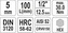Materiál byl podroben zkoušce tvrdosti pro tvrdé materiály podle Rockwella, s výslednou tvrdostí HRC58-62.