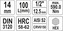 Materiál byl podroben zkoušce tvrdosti pro tvrdé materiály podle Rockwella, s výslednou tvrdostí HRC58-62.