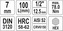 Materiál byl podroben zkoušce tvrdosti pro tvrdé materiály podle Rockwella, s výslednou tvrdostí HRC58-62.