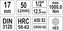 Materiál byl podroben zkoušce tvrdosti pro tvrdé materiály podle Rockwella, s výslednou tvrdostí HRC58-62.