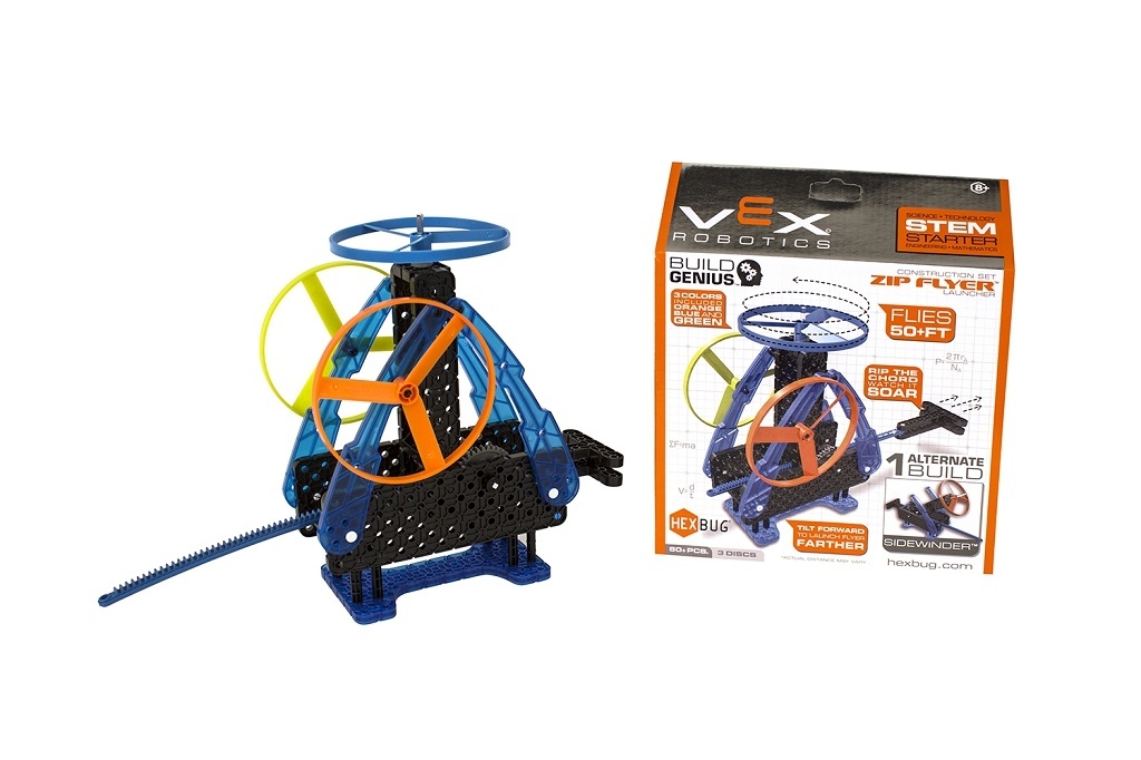 Připraveni? Startujeme a vzhůru do oblak! Představujeme vám VEX® Robotics Zip Flyer, se kterým zažijete zábavné letecké dobrodružství. Tento robotický gadget je schopen vystřelit vrtuli až do výšky přes 9 metrů!Zatáhněte za pásek se zipem a roztočte přes ozubená kola vrtuli. Čím rychleji za pásek...