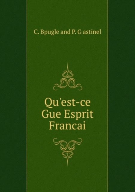 This book, Qu'est-ce Gue Esprit Francai, by C. Bpugle and P. Gastinel, is a replication of a book originally published before 1920. It has been restored by human beings, page by page, so that you may enjoy it in a form as close to the original as possible. This book was created using print-on-demand technology. Thank you for supporting classic literature.