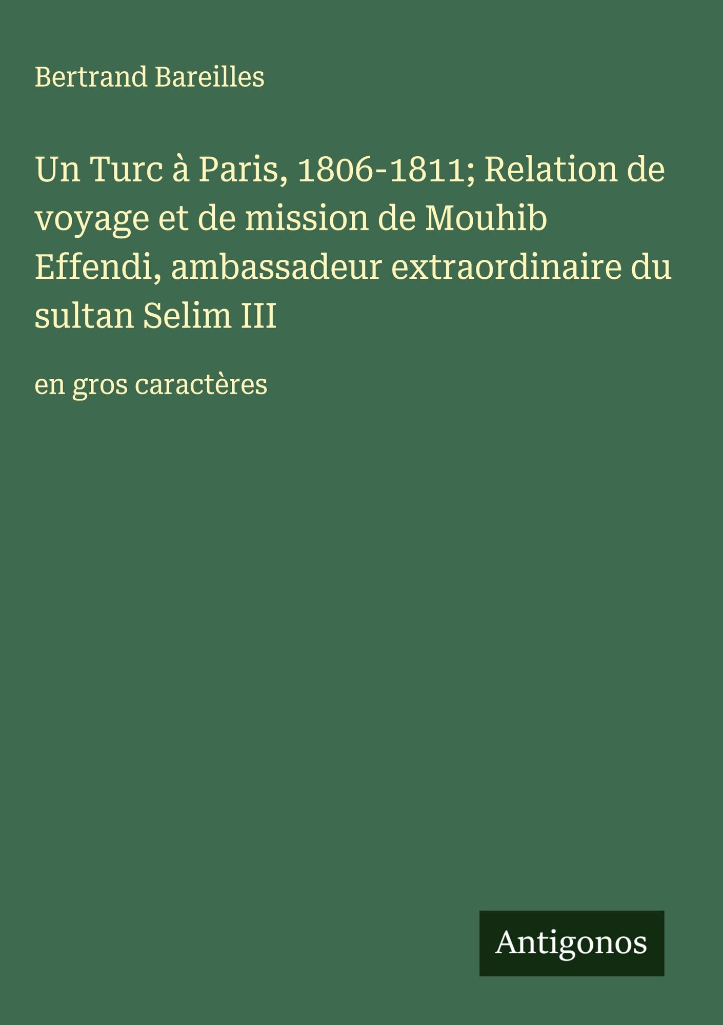 Un Turc à Paris, 1806-1811; Relation de voyage et de mission de Mouhib Effendi, ambassadeur extraordinaire du sultan Selim III (francouzsky)