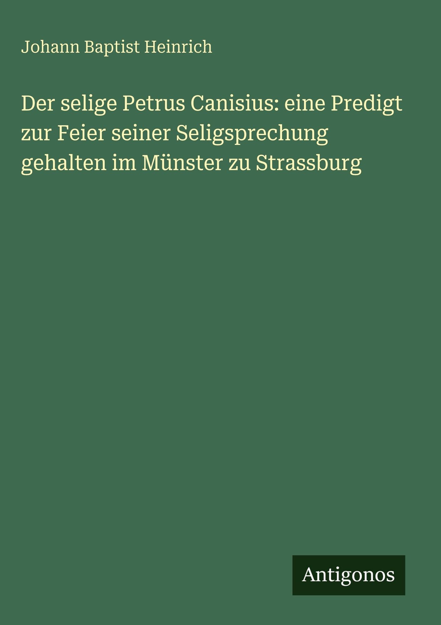 Der selige Petrus Canisius: eine Predigt zur Feier seiner Seligsprechung gehalten im Münster zu Strassburg
