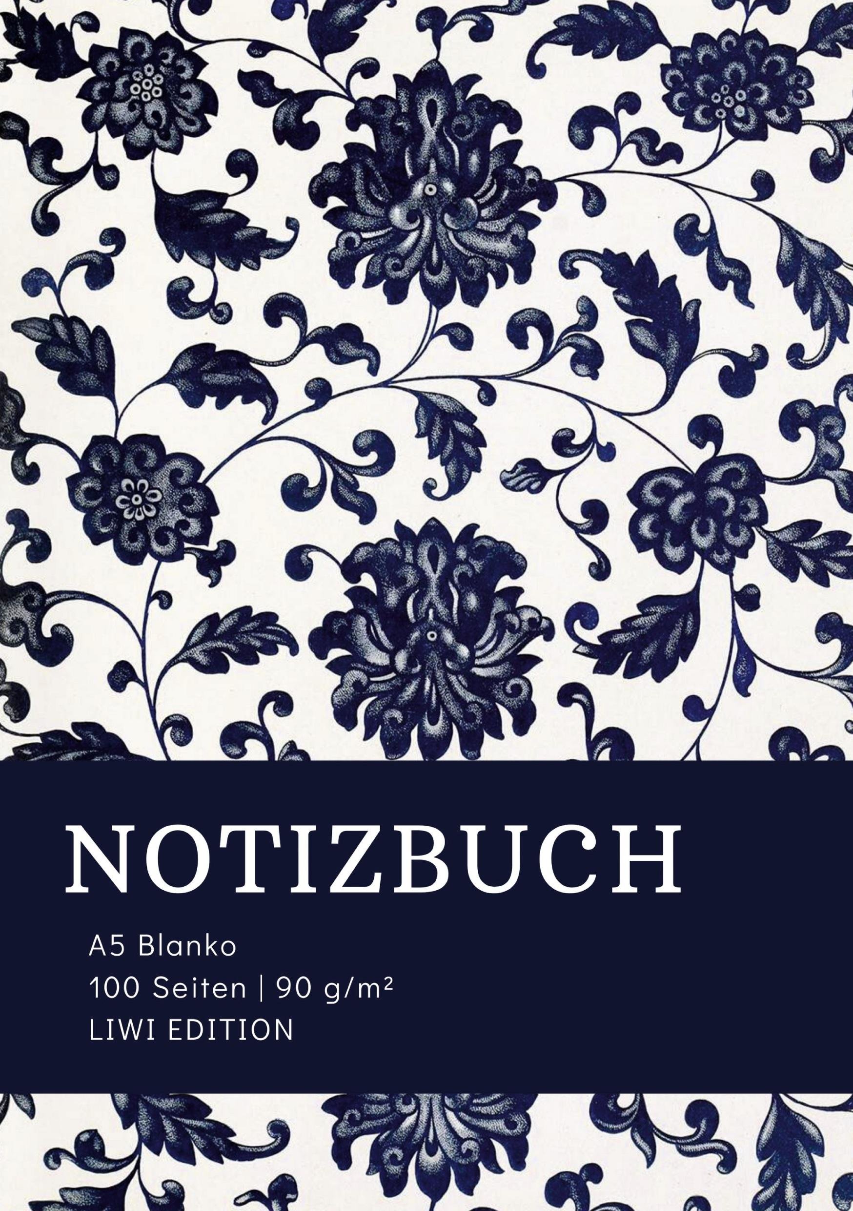 Notizbuch A5 Blanko - 100 Seiten 90g/m² - Soft Cover floral blau (německy)