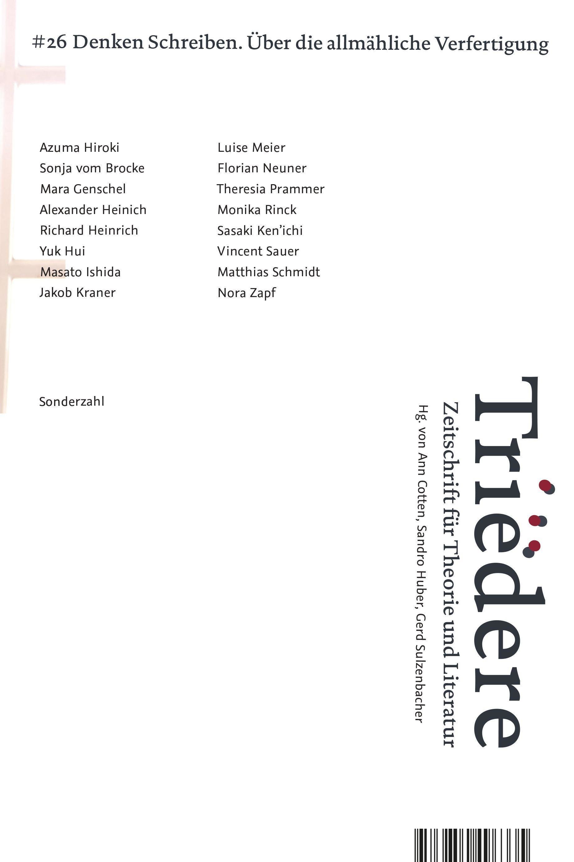 Triëdere #26: Denken Schreiben. Über die allmähliche Verfertigung (německy)