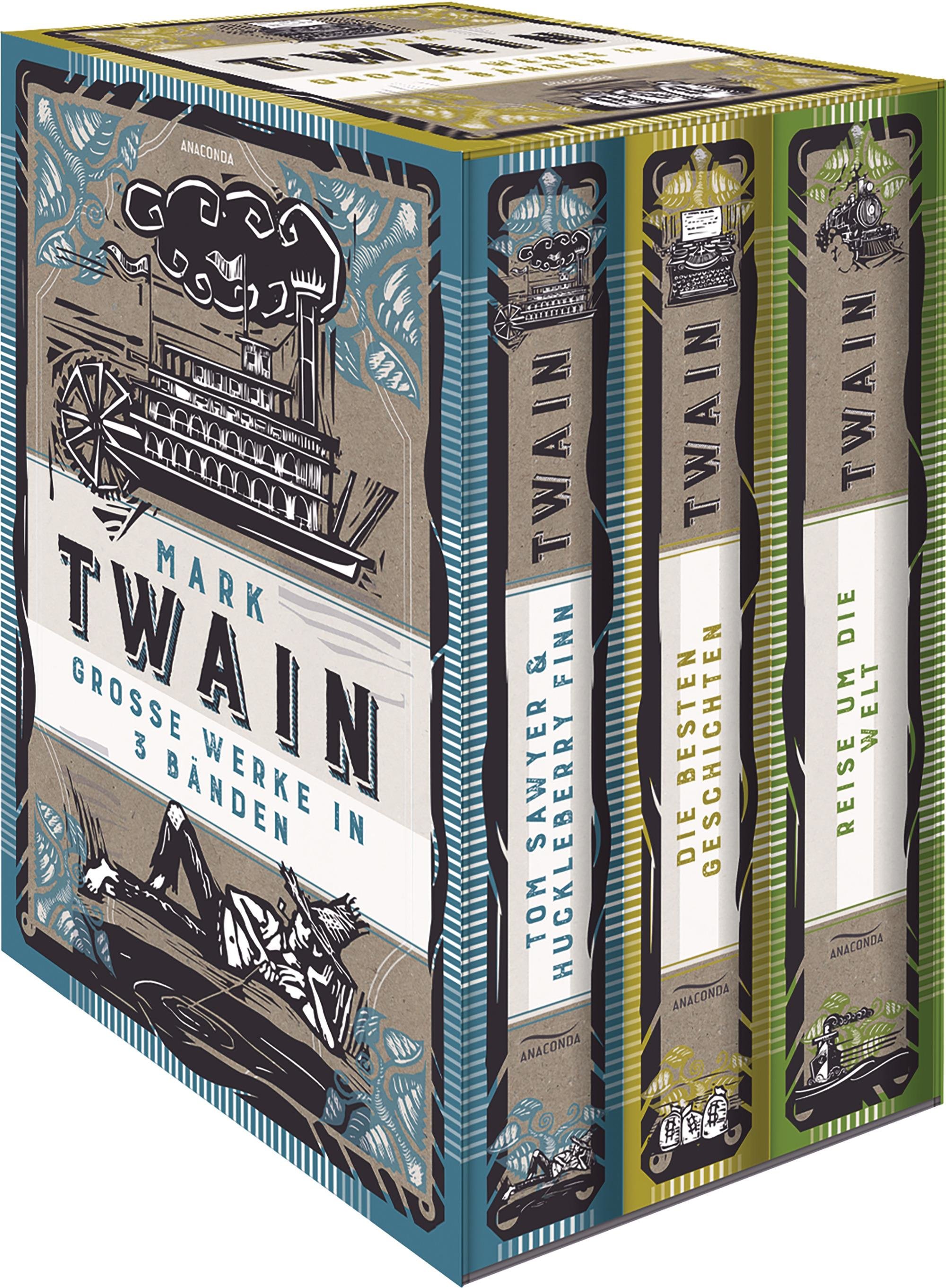 Mark Twain, Grosse Werke in 3 Bänden im Schmuck-Schuber (německy)