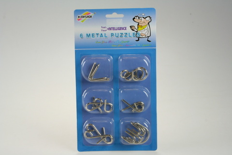 Kovový hlavolam 6ks v balení o velikosti cca 5 cm.Rozměr balení cca 13,5 cm X 24 cm.Věk 3+ prečítať celé