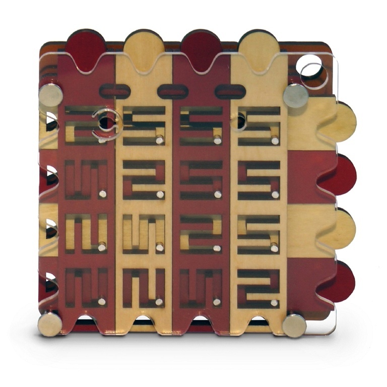 Posouvejte horizontální a vertikální posuvníky tak, abyste odhalili skrytou chodbu. Tato chodba vám umožní z hlavolamu vytáhnout kuličku. Dokážete najít tajnou chodbu, nebo budete navždy ztraceni? Originální dřevěný hlavolam. prečítať celé