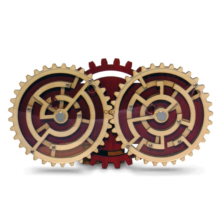 Dvě bludiště, dvě kuličky, dva problémy. Dokážete najít řešení pro získání obou kuliček? Oba dřevěné kruhy se pohybují navzájem. Krok vpřed na jedné straně může znamenat krok zpět na straně druhé! Dokážete vyřešit hádanku a každého ohromit? Originální dřevěný hlavolam. prečítať celé
