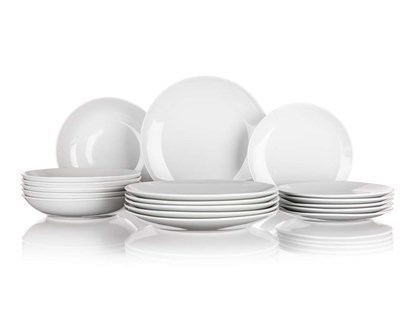 - Komplexná sada 18 kusov - 6 dezertných tanierov (19 cm), 6 hlbokých tanierov (21,5 cm) a 6 plytkých tanierov (24 cm).