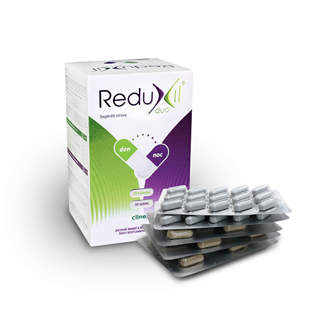 Reduxil Duo je doplněk stravy s extraktem ze zelené kávy a vinnou révou, která přispívá ke kontrole tělesné hmotnosti. Reduxil Duo obsahuje kombinaci 6 rostlinných látek obohacenou železem. Kombinace ranních a nočních tobolek respektuje přirozený biorytmus lidského těla.Upozornění:Doplněk stravy....