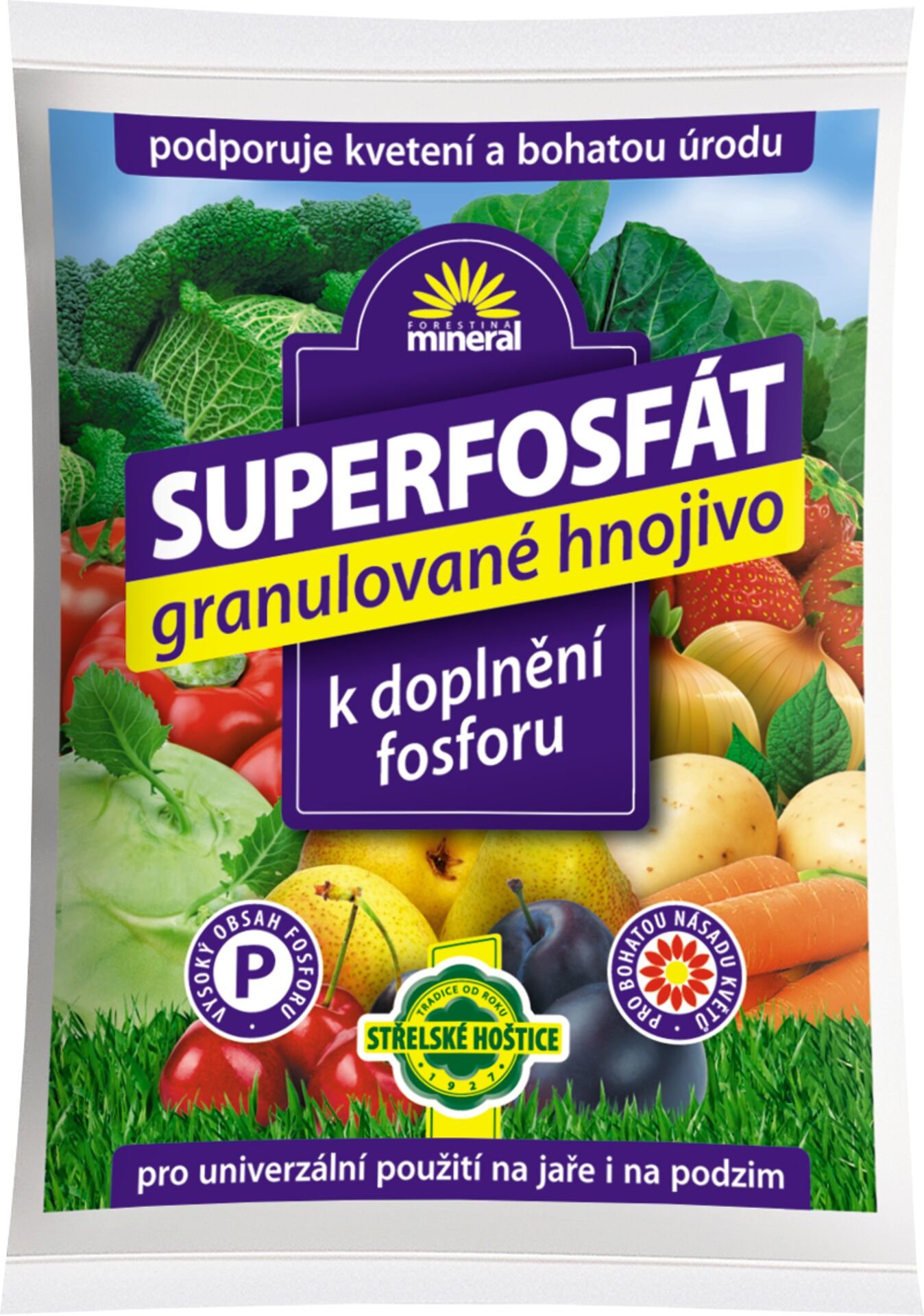 složení: P2O5 17% Popis:Superfosfát je univerzální fosforečné hnojivo určené k základnímu podzimnímu i jarnímu hnojení před setím či výsadbou. Vhodné pro všechny druhy kultur. Lze jej též přidávat do kompostů a do močůvky. Vodorozpustná forma fosforu umožňuje rychlý účinek...