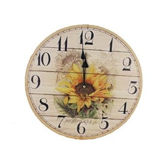 Krásné hodiny s motivem - Slunečnice.Rozměry : průměr 34 cm, tloušťka i s krabičkou na baterie 4.5 cm.Hodiny jsou na 1 tužkovou baterii. Baterie není součástí hodin.Hodiny jsou baleny v papírové krabičce viz přídavný obrázek, ručičky jsou chráněny plastem, ale krabička je bez obalu/...