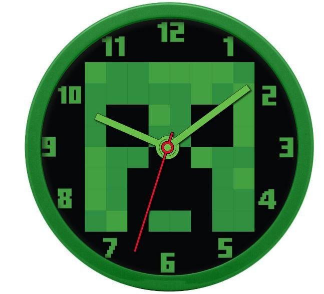 Oficiální produkt - nástěnné hodiny z katalogu zboží s grafikou a licencí populární počítačové hry v otevřeném světě Minecraft.