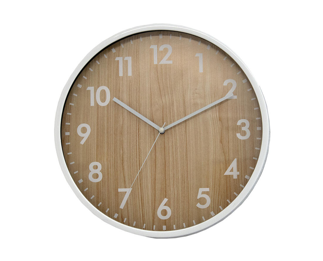 Hodiny nástěnné pr. 30,5 cm, PH, sklo, kov, BÍ / imitace dřeva.průměr: 30,5 cmvýška: 4,6 cmmateriál: plast, kov, sklobarva: bílý rám / podklad imitace dřeva / bílá číslabaterie: 1 x AA (baterie není součástí balení)Kvalitní a originální nástěnné hodiny dodají Vašemu domovu styl.Díky univerzálnímu...