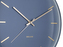 Designové hodiny v tmavě modré barvě se zlatými ručičkami.