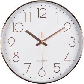 Nástěnné hodinyNapájení z baterieRozměry 290 MMPouzdro ve tvaru kruhuPlastové pouzdroRůžová barva pouzdraRučičkový ciferníkBílá barva ciferníkuCiferník s arabskými čísly prečítať celé