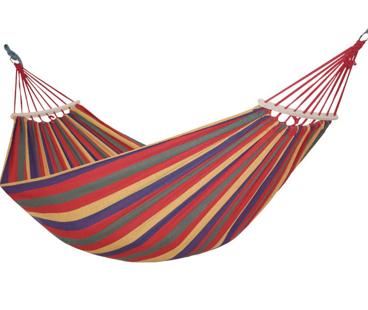 Závěsná houpací síť s výztuhou HAMAKA červená/žlutá 255x80 cm Mybesthome