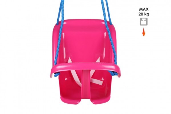 Dětská houpačka je vyrobena z pevného a odolného plastu. Houpačka pro děti visí na pevném laně a dítě je při houpání jištěno hrazdou, kterou mají před sebou. Houpačka má zadní opěradlo, popruhy pro připoutání a zepředu mezinožní jistící zarážku. Pevné lano zaručuje odolnost a výdrž. Houpačky...