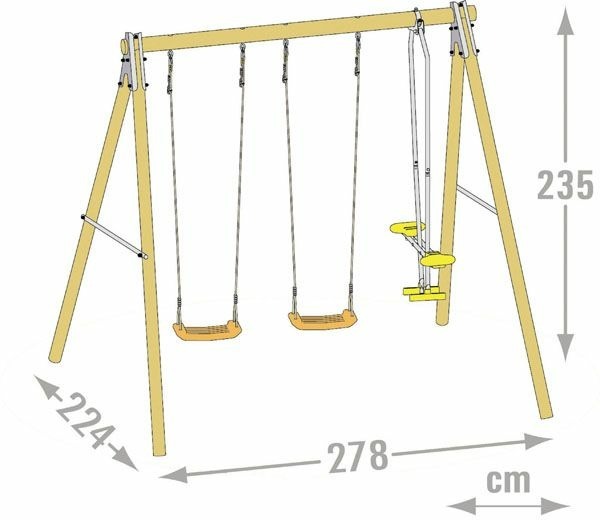 Kovová sestava vysoká 230cm s vrchní kovovou tyčí,2 plastová sedátka a houpací sáně,doporučená maximální váha na houpací sedátko je 50kg a maximální váha na houpací sáně je 50kg na dítě na každé straně. prečítať celé
