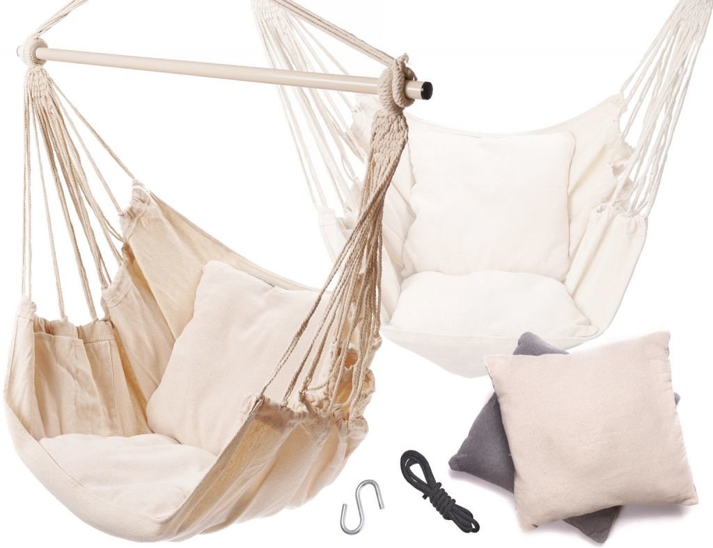Brazilské závěsné houpací křeslo s dřevěnou tyčí a polštářiHoupací síť ve tvaru pohodlného křesla v brazilském stylu.Kombinace houpací sítě a křesla v jednom!Zajistí nezapomenutelnou relaxaci na zahradě, terase nebo v soukromí domu. Ideální pro outdoorové aktivity.Je extrémně funkční a světlé...