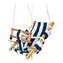 Čistou relaxaci a radost ze souměrného pohybu zažijí nejmenší děti na této houpačce z dohladka broušených masivních tyček. Pevný textil v bílé a modré nabízí pohodlné ležení, dokonce máma a táta závidí odpočinkovou zónu. Bezpečnostní páska a látkový pruh mezi nohama dítě bezpečně udrží.Nosnost...
