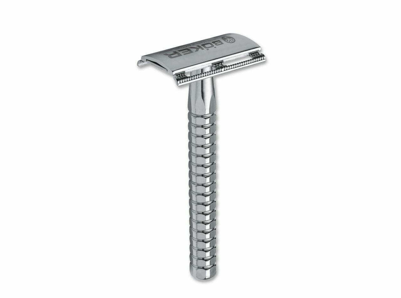 Holiaci strojček Böker Manufaktur Rasierhobel Schmalkopf má nízko profilovú holiacu hlavu s uzavretým hrebeňom, ktorá je ideálna pre problémové zóny pri holení. Zámerne predĺžená rukoväť je z pevného mosadzného bloku. Hlavové komponenty sú vyrobené z tlakového zinkového liatia. Všetky komponenty sú vybavené prvotriednym chrómovaným povrchom.