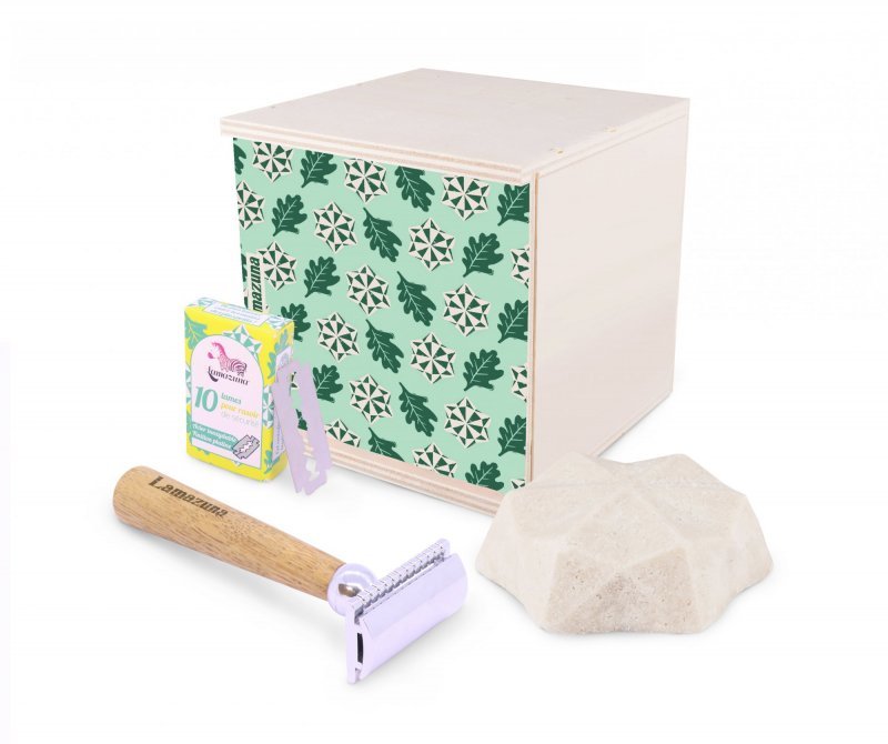 Dyzajnová krabička z topolového dřeva ukrývá perfektní dárek pro pány i dámy, kterým srdce tluče pro planetu. Holicí strojek, co vydrží celý život, sada bezpečných břitů a tuhé mýdlo na holení pozvednou udržitelný život na další úroveň. Vše z vysoce kvalitních rostlinných ingrediencí, bez plastových obalů, vyrobené ručně a s láskou ke všem živým tvorům.