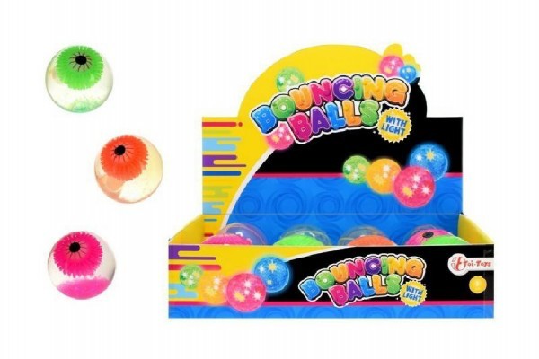 Míč Hopík oko s barevnými třpytkami svítící 6,5cm asst 4 barvy 12ks v boxu