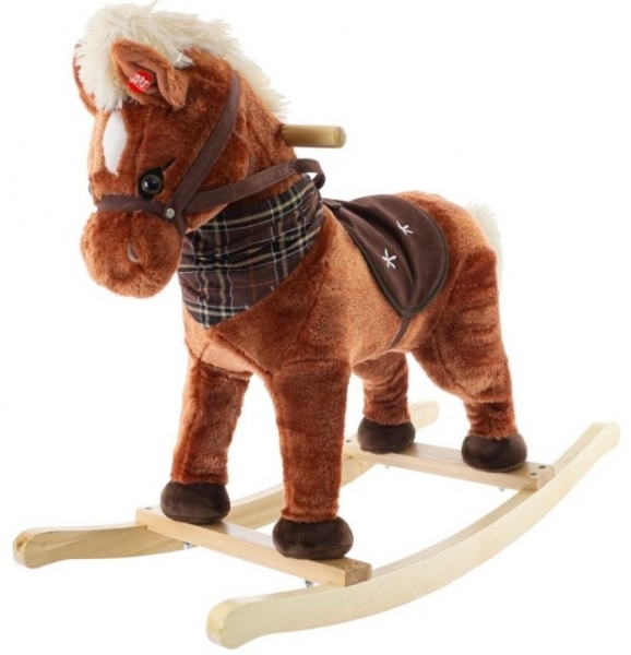 Houpací koník se zvuky.Hračka je vyrobena z materiálu velmi příjemného na dotek. Kůň má pohodlné sedlo s otěžemi a dřevěnými rukojeťmi. Po stisknutí ucha hračka vydává zvuky.Rozměry:výška sedadla 38 cm.Baterie: 2 x AA (nejsou součástí).Věk: 3+.Pro děti s váhou max. 30 kg.jakost. prečítať celé